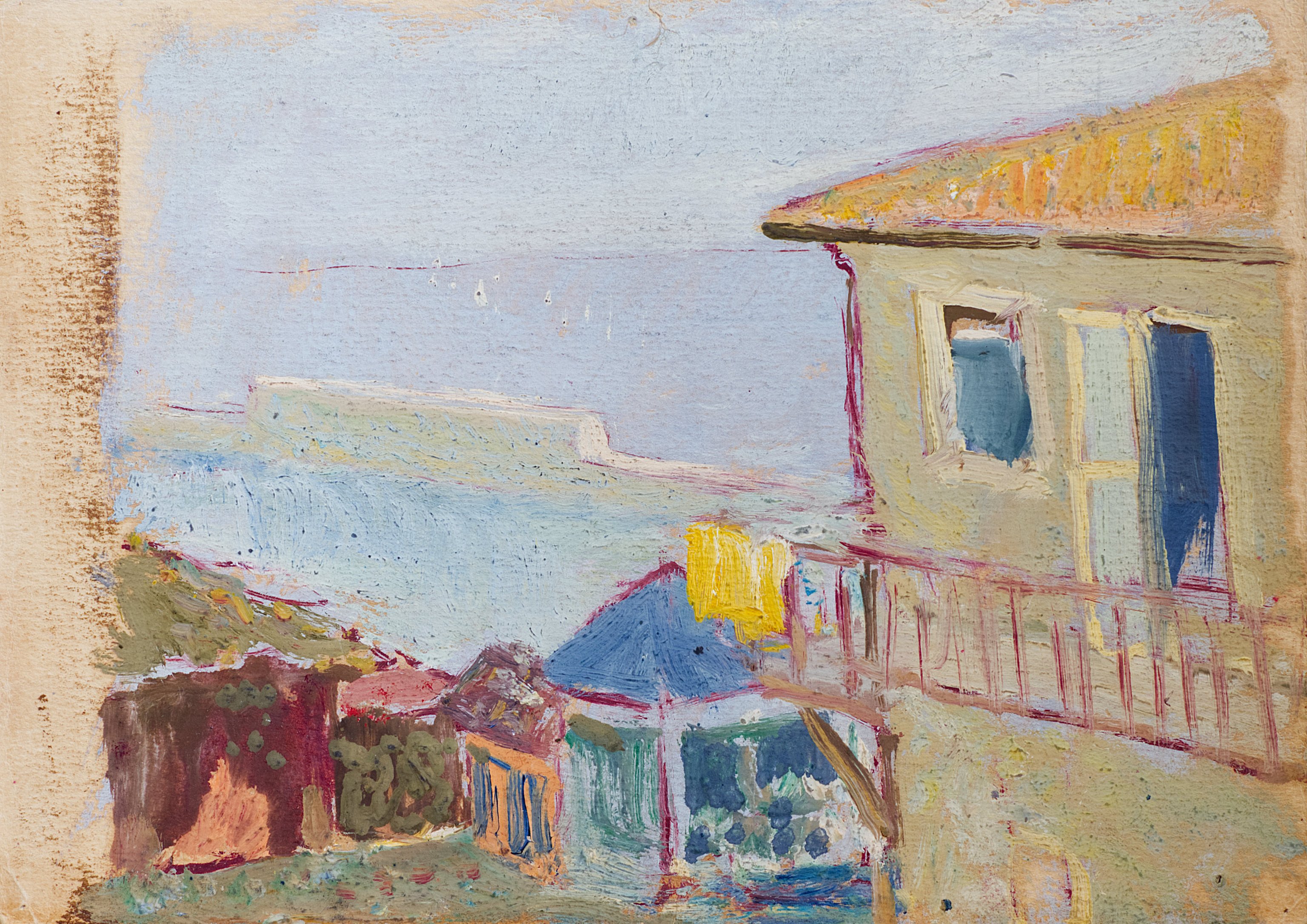 Край морето by Александър Стаменов Това произведение е собственост на галерия „Ценности“. Александър Стаменов България, 1905–1971 Край морето Маслени бои върху картон 17.5 × 25.0 cm €1,250.00 Подписана Направете запитване