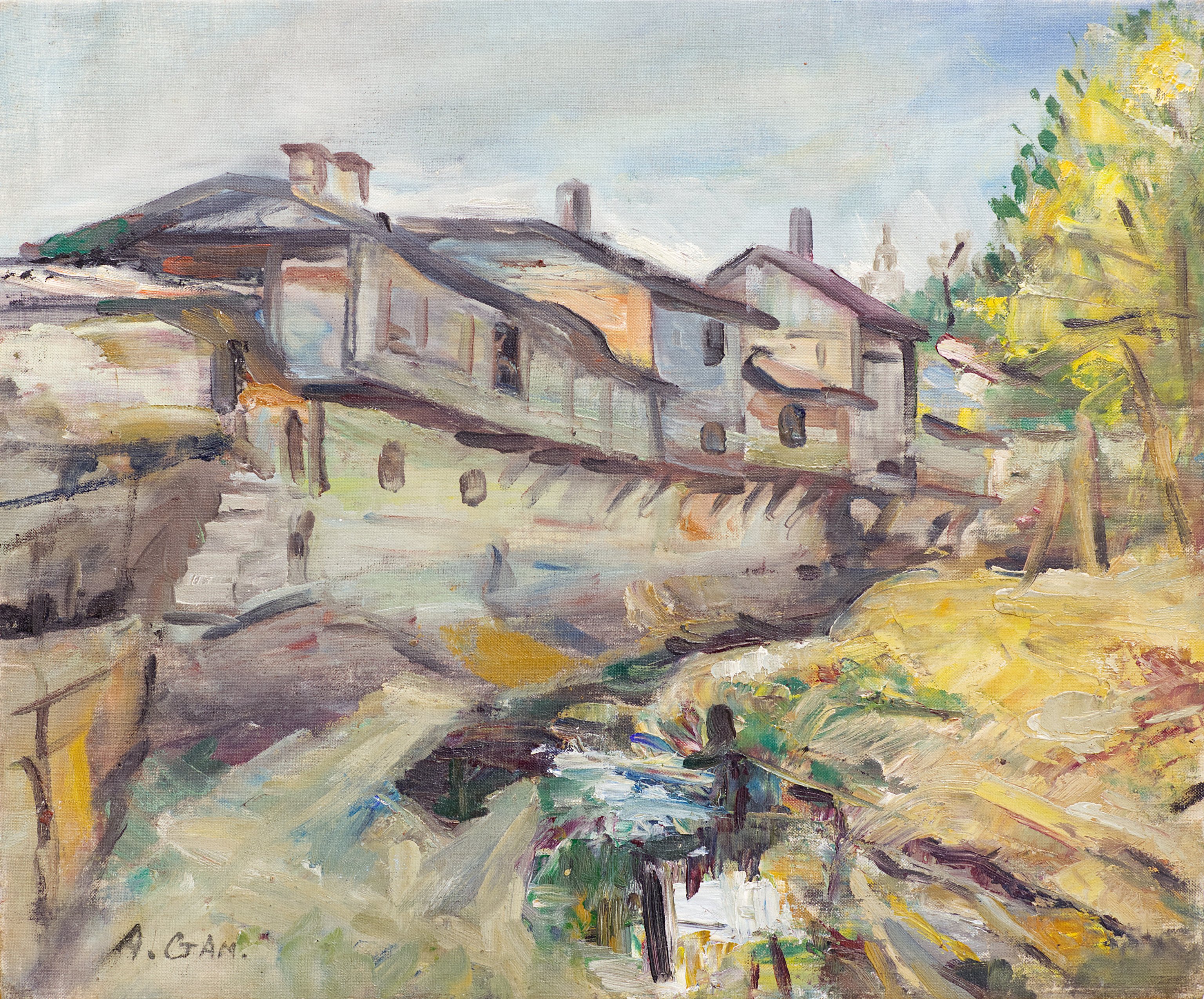 Пейзаж с къщи около 1940 година