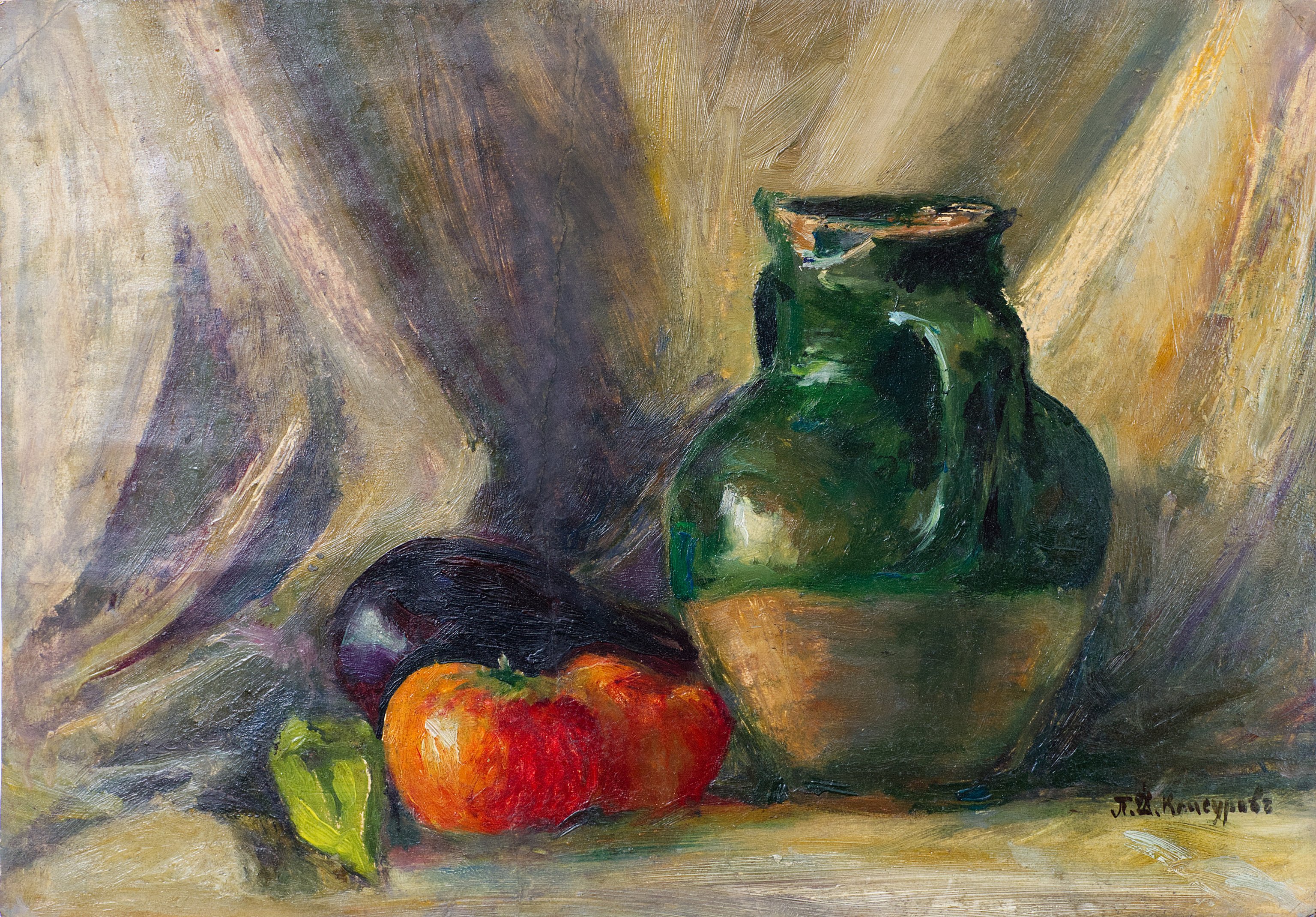 Натюрморт by Петко Клисуров Това произведение е собственост на галерия „Ценности“. Петко Клисуров България, 1865–1933 Натюрморт Маслени бои върху картон 34.0 × 48.5 cm €42,000.00 Подписана Направете запитване